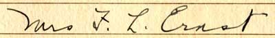 She married Frank Luther Ernst in Kitchener on October 29, 1923. Frank, born in Mahone Bay, Nova Scotia, was the son of Arthur L. Ernst and Emma Lemcke. The marriage that ended in divorce.Groom: Frank Luther Ernst Age: 22 Occupation: insurance agent Born: Mahone Bay, N.S. Res: Kitchener Parents: Arthur L. Ernst (b. Mahone Bay, N.S.) Emma Lemcke Bride: Violet Charlotte Krueger Age: 18 Born: Kitchener Res: Kitchener Parents: Otto Krueger (b. Germany) Lavina Linder? Witnesses: Myrtle Krueger, Kitchener Paul L. Ernst, Kitchener Date: 29 October 1923 Place: Kitchener, Ont